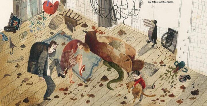 Beatrice Alemagna, con il suo inconfondibile stile naif ci regala una storia surreale al punto giusto, dove il signor Ponzio, proprio come Mary Poppins, viene interpellato al momento giusto per scardinare la rigidità di casa Snipperpott (niente feste, niente baci della buonanotte), introducendo un imprevedibile elemento “bestiale”.
