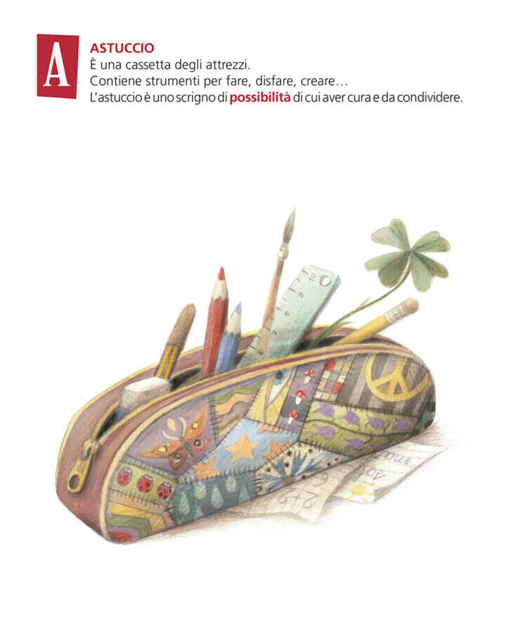A come astuccio, B come banco, C come classe… cose che raccontano la scuola senza usare le parole, perfino la H, la lettera muta per eccellenza, ha un suo posto dentro i muri della scuola.