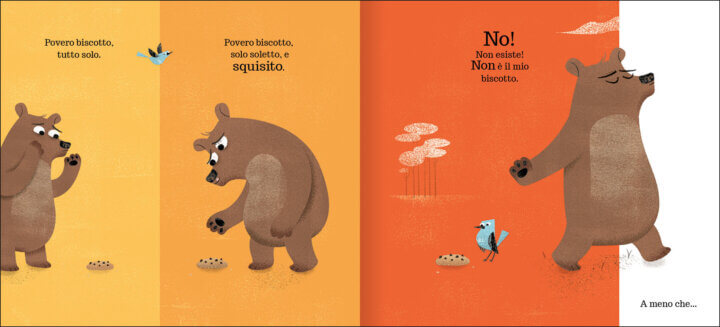 Quando si trova un biscotto per terra a chi appartiene? A chi l’ha perso o a chi l’ha trovato? Questo è il dilemma che affligge l’orso di questa storia.
