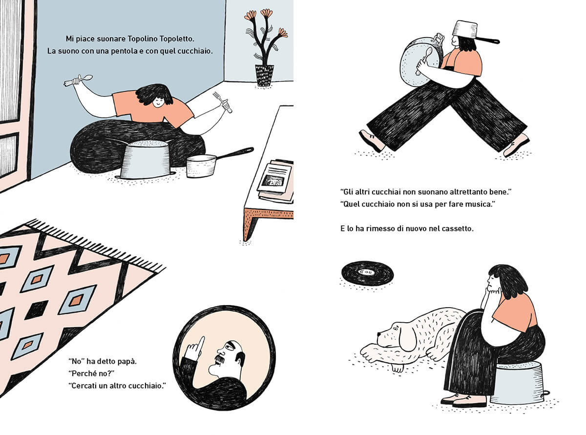 La bambina di questa storia non capisce: perché bisogna chiudere in un cassetto un cucchiaio che non si può usare né come cucchiaio né come attrezzo? La bisnonna ha conservato il cucchiaio per la nonna che poi l’ha lasciato alla mamma e un giorno sarà suo, ma un oggetto spogliato della sua funzione a cosa serve? Come tiene viva la memoria di chi l’ha posseduto, amato e conservato?