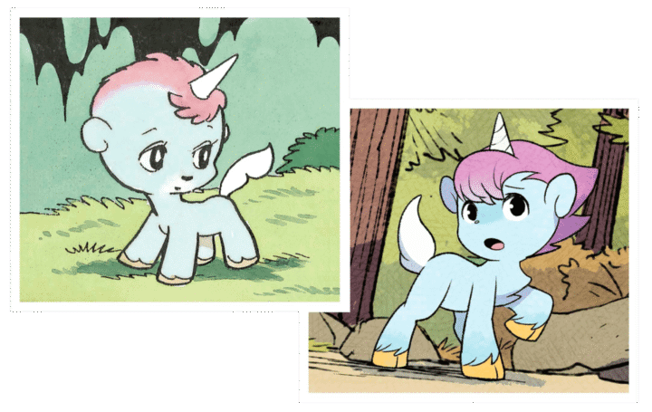 Così il piccolo unicorno ogni volta perde la memoria e si ritrova in luoghi e tempi diversi dove conosce nuove realtà e nuovi amici.